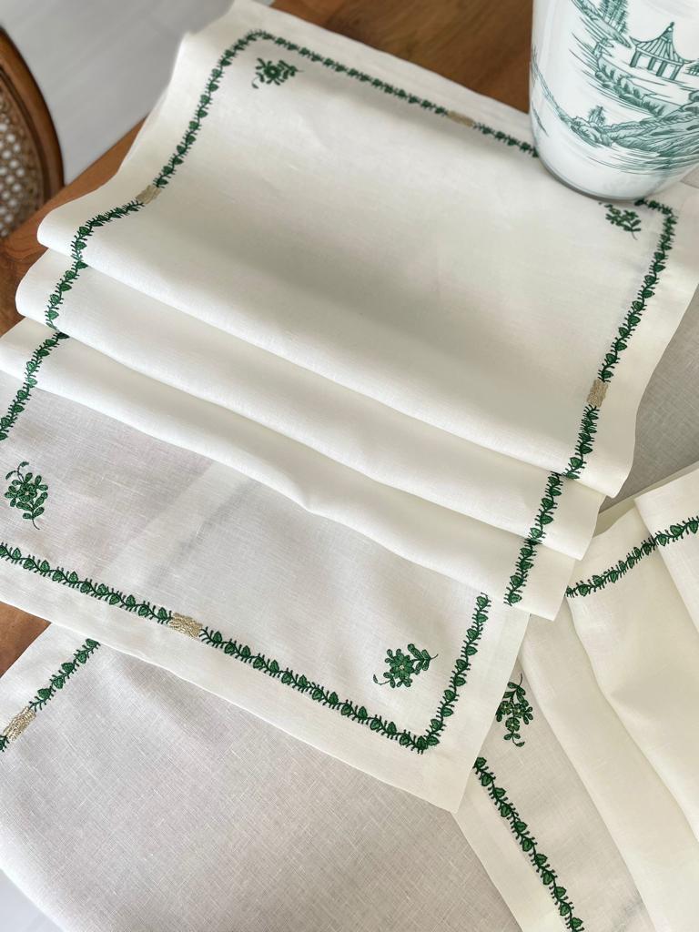 %100 keten kumaşa Apponyi tabaklara uyumlu runner
