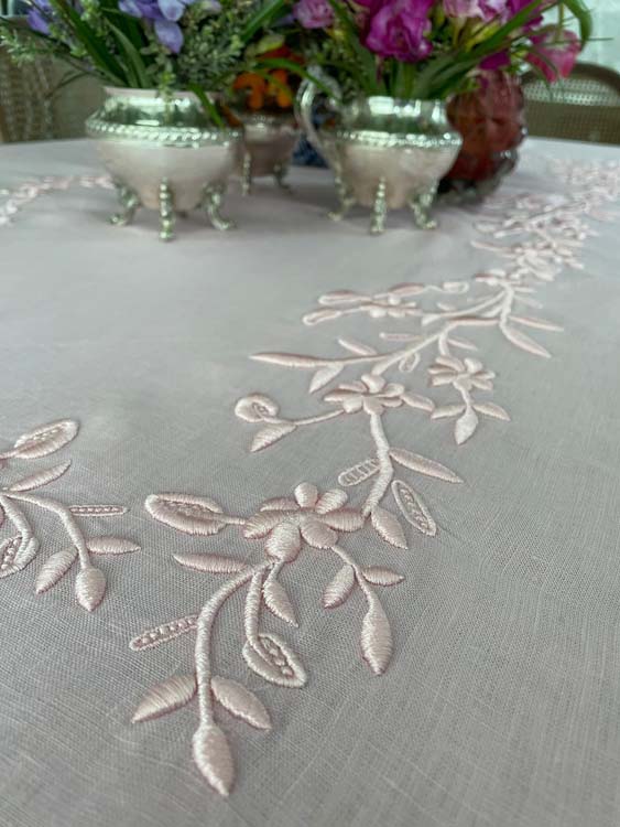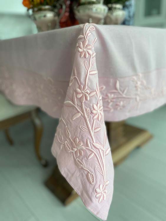 250-150 cm Kabartma Nakışlı %100 Keten Masa Örtüsü