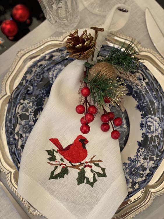 %100 Keten Üzeri Nakışlı Servis Peçetesi