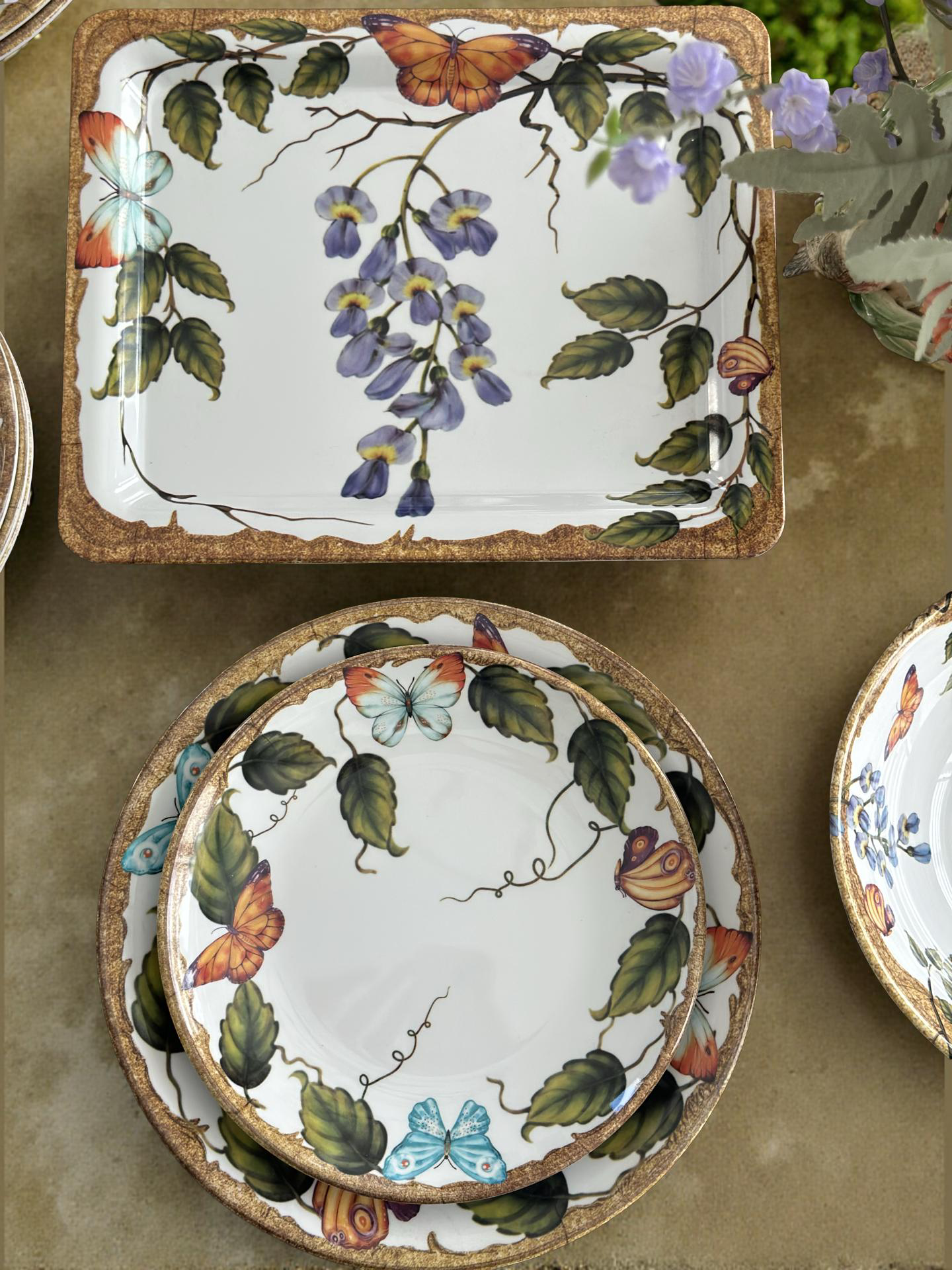 Fiorito Serisi, İtalyan bahçelerinin zarafetinden ilham alan desenleriyle sofralara doğal bir şıklık kazandırır. Asma yaprakları ve kelebek detaylarıyla bezeli bu özel seri, melamin malzemenin hafifliği ve dayanıklılığıyla estetikle fonksiyonelliği bir araya getirir.